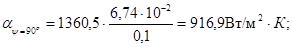 Коэффициент теплоотдачи от газов к трубе при поперечном обтекании под углом 50о :
