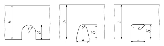 Рисунок 7 – Схемы рифлений В результате анализа полученных данных установлено, что при прочих равных условиях с увеличением толщины подошвы или при увеличении глубины рифления напряжения в подошве в месте рифления возрастают. При уменьшении радиуса закругления в наивысшей точке рифления напряжения в рифлении при изгибе подошвы также возрастают. Применение рифлений прямоугольной формы также приводит к увеличению напряжений. Моделирование поведения конструкции низа обуви в пакете конечно-элементного анализа позволило проанализировать напряженно-деформированное состояние конкретной подошвы в условиях изгиба и получить количественные рекомендации по расположению и величине максимальных напряжений в рассматриваемой конструкции. Моделируемая конструкция низа обуви состоит из формованной подошвы с рифлением, основной стельки, металлического геленка и полустельки. Очевидно, что наиболее сложной деталью для моделирования здесь является подошва. Расчет конструкции деталей низа обуви в соответствии с разрабатываемым методом выполняется методом иерархического моделирования в два этапа: на втором этапе создается модель наиболее нагруженного участка подошвы. Участок и его размеры выбираются исходя из результатов расчета всей конструкции низа обуви. Это участок максимальных растягивающих напряжений. Для ускорения расчетов получены рекомендации по конечно-элементной аппроксимации галтелей. Анализ напряженно-деформированного состояния подошвы обуви при изгибе проводился в два этапа. На первом этапе рассчитывали всю конструкцию в целом (рисунок 8). При задании граничных условий для конструкции воспроизводились закрепления и нагрузки, действующие на конструкцию в натурных испытаниях. На втором этапе проводили более подробный расчет наиболее нагруженной части подошвы – подмодель с измельченной конечно-элементной сеткой (рисунок 9).