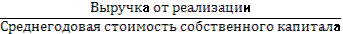 ВР - выручка от реализации за расчетный период; Анп, Акп - величина активов на начало и конец периода. · Оборачиваемость собственных средств Данный коэффициент рассчитывается как отношение выручки от реализации к средней за период величине собственного капитала.