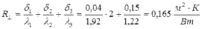 Так как процент расхождения не превышает 25%, то общее приведенное сопротивление конструкции определяется по формуле: