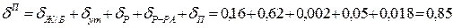 Термические сопротивления в результате двух этапов расчета не равны между собой. Определяем процент расхождения: