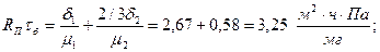 2. Определим общее сопротивление паропроницанию ограждения: Т.к. значения сопротивлений паропроницанию внутреннего и наружного воздуха По формуле (3.1):