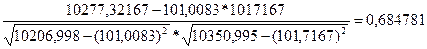 Согласно критерию Стьюдента 2 параметра модели a=55,68 и b=0,453 значимы с приемлемыми уровнями <0,05 и <0,05.