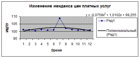 Получили, что в последующих двух месяцах изучаемый показатель будет колебаться в интервале от 99,704 до 105,33.