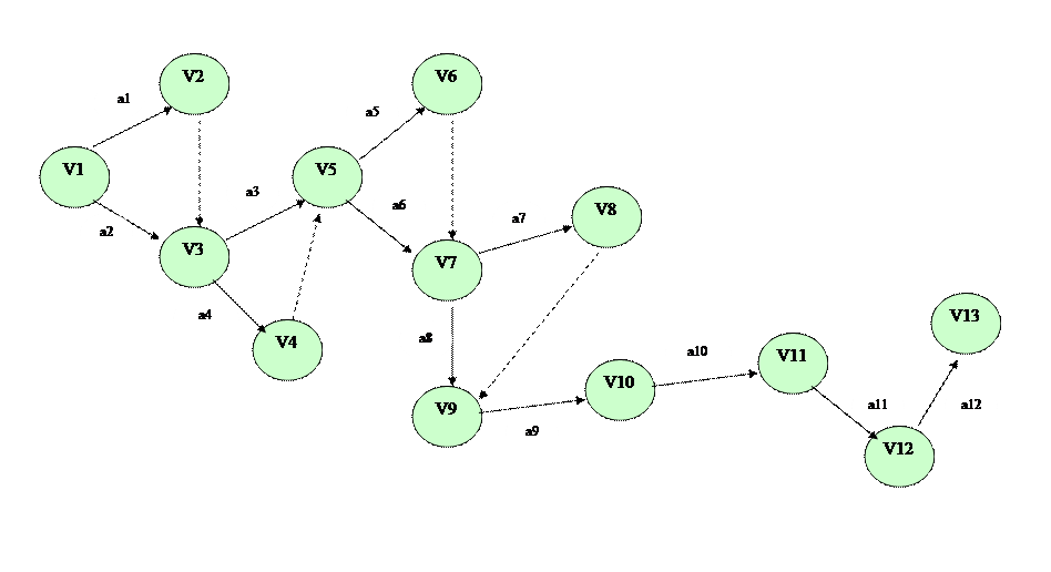Вывод к исследованию вариантов мероприятий: Проведя анализ КОВ мероприятий, необходимых для реализации целей мы выявили такие последовательности действий: ¾ Изучить нормативные акты, регулирующие земельные отношения посредством изучения сборников нормативных актов; ¾ Получить консультации у риэлтеров, землеустроителей на встрече в риэлтерском агентстве «Мегаполис»; ¾ Проверить состояние документации на конкретные земельные участки на соответствие действующим федеральным законам; ¾ Осмотреть местоположение участка в сельской местности и оценить его стоимость; ¾ Исследовать квалификацию специалистов риэлтерских и землеустроительных организаций с помощью беседы с комиссией; ¾ Улучшить теоретические знания и практические навыки специалистов по оформлению земельных участков с помощью прохождения практики В РФ; ¾ Провести наблюдение за работой специалистов по оформлению земельных участков с помощью личного присутствия при работе специалистов из Москвы; ¾ Свести к минимуму наиболее часто встречающиеся ошибки путем беседы с руководителем; ¾ Провести опрос населения на предмет знаний о процедуре оформления документов качественным методом - методом наблюдения; ¾ Рассмотреть сроки оформления документов по основным работам - камеральным работам; ¾ Изучить расценки на оформление документов по муниципальному предприятию МУП «Кадастровый центр»; ¾ Информировать население различными методами о порядке оформления земельных участков путем размещения рекламы на информационных стендах непосредственных организаций; Современные проекты порой очень сложны и включают в себя сотни и тысячи работ, выполняемых разными специалистами и внешними подрядчиками. Поэтому без планирования здесь не обойтись. Сетевое планирование – набор методов, который предназначен для управления расписанием проекта. Его основной инструмент – сетевой график, который позволяет вам: ¾ выявить перечень работ вашего проекта ¾ наглядно представить порядок их следования ¾ определить длительности каждой работы и всего проекта ¾ определить критические работы проекта и его критический путь ¾ определить резервы времени по каждой работе ¾ и т.д. [11] Главными элементами сетевой модели являются работы и события. В сетевой модели весь комплекс операций расчленяется на отдельные операции (работы), располагаемые в строгой технологической последовательности. Событие означает точку во времени, которая отделяет различные стадии осуществления проекта. Событие может свершиться только тогда, когда закончатся все работы, ему предшествующие. Последующие работы могут начаться только тогда, когда событие свершится. При составлении сети необходимо принимать во внимание следующее: - событие нельзя считать наступившим (или достигнутым), если все работы, ведущие к этому событию, не окончены; - работа не может быть начата до тех пор, пока начальное событие данной работы не наступило. [12] 5.1 Сетевой график. П еречень работ