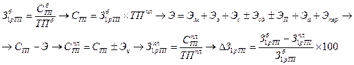 Планирование снижения себестоимости на промышленных предприятиях осуществляется в соответствии с характером производимой продукции и применяемыми показателями себестоимости. Исходя из этого, рассчитывается: · снижение себестоимости сравнимой товарной продукции; · снижение затрат на рубль товарной продукции; · снижение себестоимости продукции по технико-экономическим факторам. К сравнимой товарной продукции относятся все её виды, производимые на данном предприятии в отчётном году. Для определения снижения себестоимости вес виды сравнимой продукции, запланированные к выпуску, оцениваются по плановой себестоимости и фактической среднегодовой себестоимости за отчетный год. Разность между двумя полученными итоговыми величинами представляет собой экономию от снижения себестоимости, а ее отношение к объему сравнимой продукции по среднегодовой себестоимости за отчетный год — пропет снижения себестоимости. Если ассортимент продукции слишком широк, то расчет ведется через затраты на рубль товарной продукции, которые рассчитываются как соотношение между объемом товарной продукции по себестоимости и ее объемом в оптовых ценах. Процент снижения (увеличения) затрат на рубль товарной продукции (∆З1рТП ) определяется по формуле: где Планирование снижения себестоимости продукции по технико-экономическим факторам позволяет увязать план по себестоимости с планом технического и организационного развития предприятия. Этот метод, в отличие от других, учитывает количественное влияние технических, экономических и организационных факторов на уровень затрат производства планируемого года. Расчёт ведётся в следующей последовательности: · определяются затраты базисного года на рубль товарной продукции ( · путём умножения затрат базисного года на объём товарной продукции планируемого года рассчитывается её себестоимость при сохранении условий производства и реализации продукции в базисном году (СТП ); · определяется экономия, которая будет получена в планируемом году под влиянием технико-экономических факторов (Э ); · из себестоимости товарной продукции планируемого года, вычисленной по уровню затрат базисного года, вычитается итоговая сумма экономии и определяется себестоимость товарной продукции в ценах и условиях базисного года (СТП ); · из полученной величины вычитается (прибавляется) сумма предполагаемого изменения оптовых цен на потребляемые материальные ресурсы (услуги) (Эц