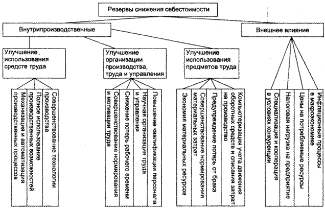 Рис. 3.1. Группировка путей снижения себестоимости Смысл такого деления состоит в следующем: · технические способы реализуются в более совершенных и производительных средствах труда; · организационные — предполагают наиболее удачное сочетание во времени и в пространстве соединения средств труда, предметов труда и рабочей силы; · экономические — воплощаются в создании мотивационных механизмов, обеспечивающих достижение наилучших результатов при наименьших затратах, в альтернативных вариантах решения производственных задач. Резервы или источники снижения себестоимости представляют собой неиспользованные возможности. Они подразделяются на две подгруппы — резервы, зависящие и не зависящие от предприятия (рис. 3.2). Внутрипроизводственные резервы выявляются в процессе аудита и анализа, причинами их существования могут быть объективные и субъективные факторы.
