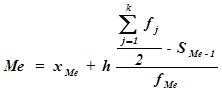 где хМе – нижняя граница медианного интервала, h – величина медианного интервала,
