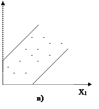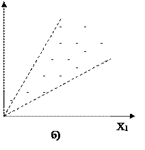 5.4 а суретте қателіктердің тұрақты екі бойынша орналасқан, ал 5.4 б квадраттық формаға сәйкес келеді, 5.4 д түсіндіруші айнымалылар мәні қисыққа жақын орналасқан, 5.4 г, д – статистикалық мәліметтердің көп бөлігін бейнелейді. Айта кету керек, жұптық регрессия жағдайында ауытқудың графиктік талдауы жеткілікті мөлшерде ыңғайлы және сенімді болады. Ал көптік регрессия жағдайында графиктік талдау әрбір түсіндіруші айнымалылар хj үшін j=1,2,…,m тек қана жеке-дара қарастыру мүмкін болады. Көптеген жадайда абцисса осіне Х