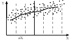 Рисунок 4.1. Экспериментальное уравнение регрессии Разобьем диапазон изменения Определим частичные средние арифметические