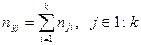 где В нижней строке и в последнем столбце таблицы представлены условные средние значения, вычисленные по формулам: