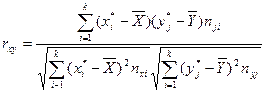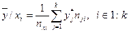 Величины, входящие в уравнение (4), могут быть найдены по данным, объединённым в группы. При вычислениях по группированным данным величины