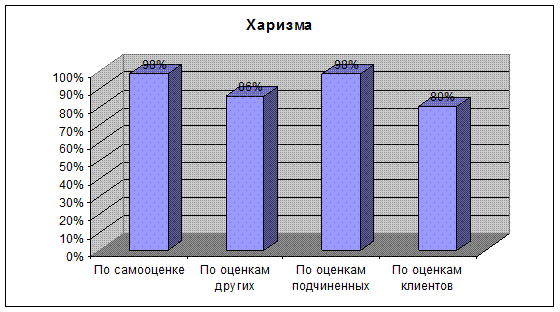 Способность завоевать репутацию признанного лидера в компании, воодушевлять и мотивировать сотрудников, создавать и внедрять корпоративные ценности. · Харизма · Вдохновление других · Создание корпоративных ценностей Данные по этим показателям также представим графически.