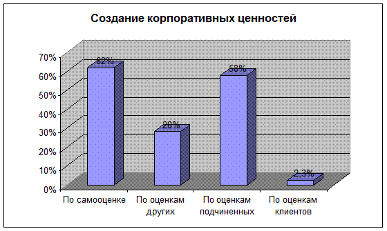 Рисунок 9. Создание корпоративных ценностей Таблица 6 Обеспечение успеха