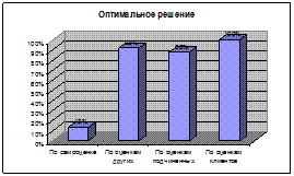 Рисунок 2. Средние оценки по индикаторам (компетенция «качество работы») Благодаря такому представлению данных сотруднику легче разобраться, по каким конкретным поведенческим проявлениям он получил низкую оценку, и скорректировать свою деятельность. В частности из диаграммы на Рисунке 2 видно, что он соблюдает стандарты компании и без ошибок выполняет свою работу, однако не всегда соблюдает сроки[12] . Работая с графической и числовой информацией при составлении содержательной части отчета, важно помнить, что, несмотря на преимущества подобной формы изложения материала, не стоит перегружать его таблицами и диаграммами, и придерживаться следующих правил: · использовать графические элементы только для пояснения компетенций, по которым работник получил низкий балл; · дополнять текстом (желательно), составляющим по объему примерно 2/3 от каждой таблицы или диаграммы. Как было сказано выше, после каждой диаграммы должно следовать пояснение. Стоит обратить внимание на высокие и низкие баллы и прокомментировать, что могло стать причиной таких оценок, либо задать вопрос об этом самому сотруднику. Глава 2. Оценка сотрудника по методу «360 градусов» 2.1 Описание исследования Во второй главе данной работы нами была проведена индивидуальная оценка сотрудника компании по методике «360 градусов». Оценка проводилась для компании «Миллениум», на момент создания отчета в ней приняли участие 82 человека. Оценка проводилась через Интернет с использованием системы BSS Around. Каждый участник получил по электронной почте приглашение к участию вместе со ссылкой для входа в систему оценки. В основу наших результатов положены оценки 18 человек из делового окружения исследуемого по 4 компетенциям, а также собственные оценки исследуемого (к моменту создания отчета человек оценил 30 сотрудников). Используемые в отчете рейтинг-баллы являются относительными показателями, повторное построение отчета может изменить групповые показатели и привести к изменению приведенных в отчете результатов. По результатам оценки доступны лишь усредненные оценки, а сами ответы на вопросы не доступны никому. Таким образом обеспечена и объективность, и конфиденциальность. Из отчета можно узнать оценки испытуемого по ключевым компетенциям, сильные и слабые стороны (по мнению окружения), можно узнать, кому из коллег испытуемый был склонен завышать или занижать оценки. В оценках использованы два показателя: оценочная пятибалльная шкала (1 - минимально низкая оценка, 5 - максимально высокая) с округлением до десятых, а также рейтинг-балл (процент сотрудников, показавших результат ниже показателя испытуемого по данному показателю). Например, рейтинг-балл в 90% означает, что испытуемый опередил 90% своих коллег, и попал в число лучших 10%, а рейтинг-балл 10% — что испытуемый опередил только 10%, и остался позади остальных 90%. Рейтинг-балл в 50% означает, что испытуемый находится точно в середине рейтинга по данному показателю. Результаты исследования представлены в виде отчета, подготовленного для ознакомления для самого испытуемого. 2.2 Рейтинг-баллы и значимость результатов Все приведенные в отчете оценки основаны на одном из двух показателей: 5-балльная оценка и рейтинг-балл. 5-БАЛЛЬНАЯ ОЦЕНКА Традиционная 5-балльная оценка, от 1 (самый низкий балл) до 5 (самый высокий). Оценка по 5-балльн