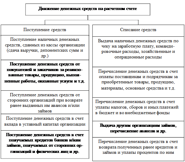 Рис.1- Движение денежных средств в СПК «Филипповский» на расчетном счете Приведем для наглядности пример отражения в бухгалтерском учете банковской операции на основании выписки банка: СПК «Филипповский» получила выписку банка от 17.09.2010 г., с приложенными к ней следующими денежно-расчетными документами: · платежное поручение № 27 от 17.09.2010 г. на оплату поставщику товаров ЗАО «Сельбиофарм» 118 000 руб., включая НДС - 18 000 руб.; · квитанция к приходному кассовому ордеру № 31 от 17.09.2010 г. на получение по чеку из банка 300 100 руб. в кассу на выдачу заработной платы в сумме 200 000 руб. и хозяйственные нужды в сумме 100 000 руб.; · мемориальный ордер банка № 609 от 17.09.2010 г. на сумму 600 руб. (комиссия за выдачу наличных денег на хозяйственные нужды); · платежное поручение СПК «Маяк» № 114 от 17.09. 2007 г. на оплату им товара СПК «Филипповский» согласно договору, № 14 от 09.09. 2010 г. и счету-фактуре № 16 от 12.09. 2010 г на сумму 236 000 руб., включая НДС - 23 600 руб. После обработки выписки банка и сверки правильности всех сумм банковские операции по расчетному счету за 17.09.2007 г. отразятся в бухгалтерском учете следующими проводками (табл. 10): Таблица 10- Записи на счетах бухгалтерского учета банковских операций по расчетному счету СПК «Филипповский»