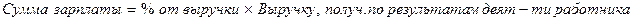 Средняя заработная плата одного рабочего за месяц складывается из: ФОТ за месяц разделить на Численность персонала, не включая премии и надбавки. Из таблицы 1 видно, что средняя заработная увеличилась на 72 руб. ФОТ за год рассчитали как: ФОТ за месяц умножили на 12 месяцев, и исходя из формулы видно, что фонд оплаты труда увеличился на 40 500 руб. Средняя заработная плата одного рабочего за год складывается из: Средняя заработная плата одного рабочего за месяц умножить на 12 месяцев и она за период с 2005 года увеличилась на 885 руб. Исходя из данных таблицы, можно сделать вывод о том, что все показатели деятельности предприятия значительно увеличились, что говорит об успешной его работе. Если не детализировать градацию профессий, то на предприятии ООО «МПП Алешкова» коллектив распадается на три категории: 1. люди, занятые непосредственно в процессе продажи продукции, — это производственный персонал; 2. люди, занятые во вспомогательных и обслуживающих производство и управление процессах, — это вспомогательный персонал (уборщики, грузчики, ремонтники и настройщики оборудования, снабженцы, бухгалтерия и т.п.); 3. люди, занятые управлением деятельностью - это управленческий персонал (директора, начальники). Эти три категории имеют разные возможности участия в процессе реализации и разные возможности его совершенствования, от которого зависит показатель «прибыль, приходящаяся на одного занятого». Теперь проведем анализ организации оплаты труда ООО «МПП Алешкова». 2.2 Организация оплаты труда в ООО «МПП Алешкова» Предприятия самостоятельно устанавливают формы, системы и размеры оплаты труда, а также другие виды доходов работников. На предприятии ООО «МПП Алешкова» окладно – премиальная система оплаты труда. Для современного эффективного управления ООО «МПП Алешкова» более соответствует окладно – премиальная система оплаты труда. В ней: Основной оклад - гарантирован однозначно. Он платится как потенциал работника, ответственность за использование которого в интересах ООО «МПП Алешкова» большей частью лежит не на работниках, а на их руководителях. Основной оклад - следствие коллективного характера труда на предприятии; Премия. Её величина может быть от нуля до нескольких окладов и зависит от многих факторов: · общего объема свободной прибыли; · оценки вышестоящими руководителями личного вклада сотрудника в работу коллектива в течение оплачиваемого периода времени; · оценки значимости сотрудника для ООО «МПП Алешкова», исходя из его работы в прошлом и ожиданий на перспективу (обычно эта часть премии обычно оформляется в качестве персональных надбавок к окладу: за выслугу лет, за квалификацию, владение несколькими профессиями, иностранными языками, за способность решать задачи и т.п.); · единовременных целевых выплат в связи с личными и семейными обстоятельствами жизни сотрудников (рождение детей); · предоставление предприятием своим сотрудникам кредита и прощение ранее выданных ссуд в полном объеме или каких-то их долей. Окладно – премиальную систему оплаты труда характеризует показатель: «доходы, полученные в качестве оклада» / «доходы, полученные в качестве премий и персональных надбавок», или похожий показатель: «доходы, полученные в качестве оклада» / «общий объем доходов, включая премии». От мнения руководителя зависит вы