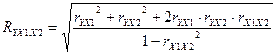 Для измерения тесноты связи при множественной корреляционной зависимости, то есть исследование двух или более признаков одновременно, вычисляется множественный коэффициент корреляции. Множественный коэффициент корреляции для двух факторных признаков вычисляется по формуле: