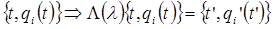 включающих замену независимой переменной. Однако конкретный вид для нового выражения для действия, как функционала новых координат, зависящих от нового времени, может претерпеть при таком изменении любые изменения. Теорема Нётер интересуется только тем случаем, когда таких изменений не происходит. Итак, будем считать, что мы ввели совокупность зависящих от (для простоты) одного параметра l