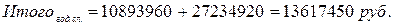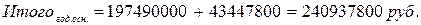 – прямая заработная плата по основным рабочим; ЗДОПосн . – доплата к прямой заработной плате; ЗДОПосн . = 61290000 руб., рассчитана по формуле (2.11). Подстановкой значений в формулу (2.14) получено: Итоговая основная заработная плата по вспомогательным рабочим, Итоговсп. , руб., определяется по формуле: где Прям.з/пвсп. – прямая заработная плата по вспомогательным рабочим; Прям.з/пвсп = 41920000 руб., по формуле (2.9); ЗДОП