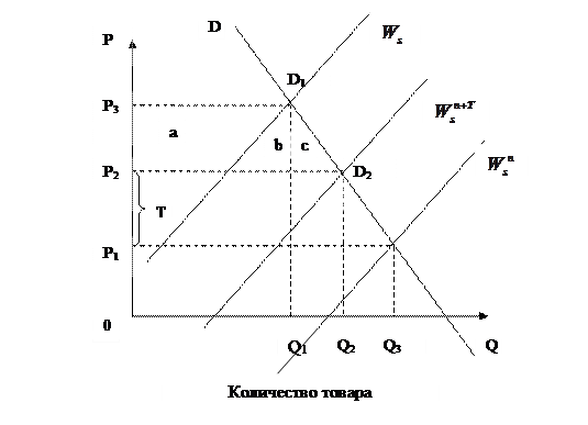 Рис. 2. Влияние импортной пошлины на экономику страны — «парадокс Мецлера» На графике линия W