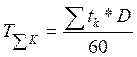tшт. = 6,8 + 0,25 + 1 + 0,9 + 1 = 9,95 (мин.) tk