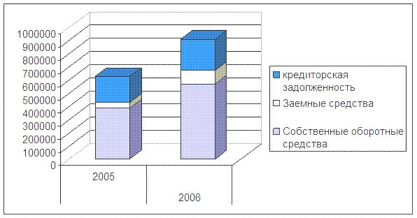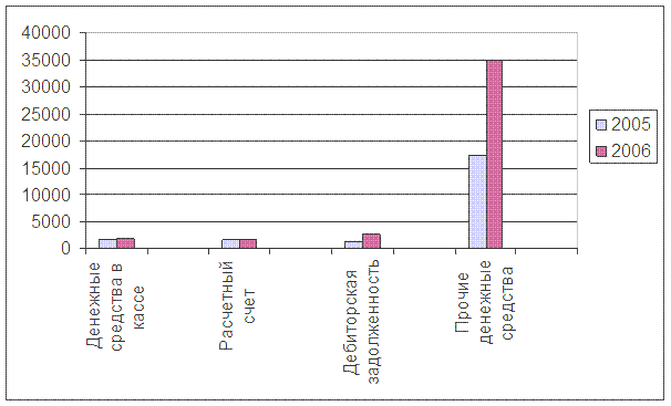 П р и м е ч а н и е - Источник: собственная разработка Объем производство продукции на предприятии ЗАО «Пинскдрев» за 3 года увеличился на 1 700,4 млн. руб., выручка от реализации продукции – на 1 690,2 млн. руб. Прибыль от реализации продукции предприятия увеличилась на 234,6 млн. руб. Наблюдается положительная динамика роста показателей рентабельности продукции и продаж, а также увеличение прибыли в расчете на 1 руб. материальных затрат. В настоящее время ЗАО «Пинскдрев» выпускается свыше 1 500 наименований продукции, среди которых можно выделить следующие основные виды- фанера клеенная, древесностружечные плиты, шпон строганный, спички пиломатериалы, смола синтетическая, различная мебель и потребительские товары. Многообразие производимых товаров свидетельствует о значительных масштабах и развитости производства. Для обеспечения успешного функционирования и развития ЗАО «Пинскдрев» в долгосрочной перспективе необходим более глубокий и комплексный учет руководством предприятия факторов внешней и внутренней среды, в частности динамики спроса потребителей, потенциала конкурентов, и концентрация усилий на развитии рекламной деятельности, формировании корпоративной культуры и преодолении угроз внешней среды за счет оптимального и более эффективного использования внутренних ресурсов организации (высококвалифицированного персонала (интеллектуальный и творческий потенциал), материально-технической базы, финансовых средств). 2.2 Анализ основных элементов оборотных средств на ЗАО «Пинскдрев»Оборотные активы занимают большой удельный вес в общей сумме капитала предприятия. От рациональности и эффективности его размещения и использования зависит успех всей его деятельности. В процессе анализа необходимо установить, какими оборотными средствами располагает предприятие ЗАО «Пинскдрев» и какие изменения произошли в их объеме и составе. На начало базисного года оборотные средства, которыми располагало ЗАО «Пинскдрев», составили 783255 млн. руб. На конец отчетного года сумма оборотных средств увеличилась в 1,42 раза и составила 1112992 млн. руб. В табл. 2.2. приведены изменения, происходящие в структуре активов предприятия. Таблица 2.2 - Динамика структуры активов ЗАО «Пинскдрев» за 2005 -2006 гг.
