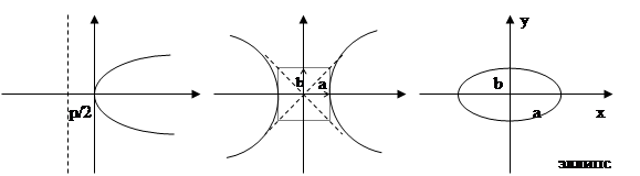Гипербола. х2 /а2 -у2 /b2 =1 Парабола. y2 =2px, где p>0