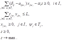 Тогда только оценка этого ресурса будет положительна: Полное использование только одного вида ресурсов (или наличие только одного «узкого» места) как типичное свойство оптимального решения не обязательно связано с условиями максимизации конечной продукции в заданном ассортименте. Для сравнения рассмотрим модель, в которой условия максимизации переменной части конечной продукции заданы в виде ЦФП: