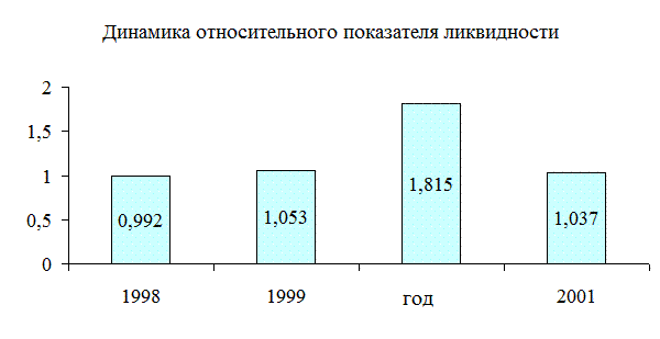Рис. 2 Основной показатель развивающегося и эффективного производства – прирост стоимости чистых активов. Величина чистых активов ОАО «Курганхиммаш» увеличилась с 116437 тыс.р. в 1999 году до 288925 тыс.р. в 2001 году. Согласно федеральному закону №208-ФЗ «Об акционерных обществах» величина чистых активов открытого акционерного общества должна превышать величину тысячекратного размера МРОТ в соответствующем отчетном году. Минимальный размер оплаты труда на начало 1999 года составил 8349 р, 2000 года –8349 р, 2001 года –132 руб, 2002 года – 300 р. Фактически чистые активы ОАО «Курганхиммаш» превышают указанную нормативную величину. 2.4. Анализ платежеспособности предприятия Под платежеспособностью предприятия понимают способность к быстрому погашению своих краткосрочных долговых обязательств. Для этого необходимы денежные средства: достаточный запас денег на расчетном счете банка и в кассе и некоторые мобильные (наиболее ликвидные оборотные) средства, которое предприятие может обратить в деньги. В условиях рынка повышается значение платежеспособности предприятия, так как возрастает необходимость своевременной оплаты предприятием текущих платежных требований. В первую очередь необходимо произвести анализ ликвидности баланса предприятия. Таблица 16Анализ ликвидности баланса организации