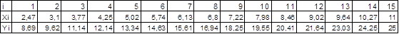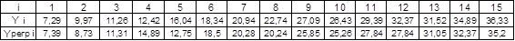 Опишемо порядок виконання роботи з використанням пакету Excel. Створимо таблицю розрахунків, в яку зведемо проміжні та кінцеві розрахунки моделі парної лінійної регресії (додаток 1). В розрахунковій таблиці блок вихідних даних формується в перших двох стовпцях B2: C16. За блоком вихідних даних іде блок проміжних розрахунків D2: N16. Прогнозні значення обчислюються у 17му рядку. Введемо гіпотезу, що між факторами X та показником Y існує лінійна стохастична залежність Ŷ=a1·X+a0. Оцінка параметрів a1 і a0 парної регресії обчислюються методом найменших квадратів за формулами
