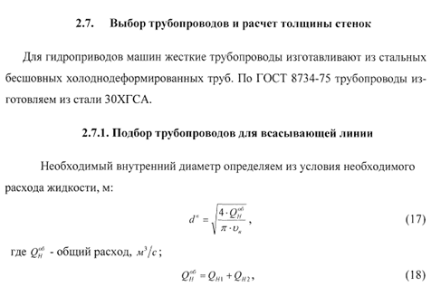 Необходимый внутренний диаметр трубопровода второй линии: м: d Минимальная толщина стенки, м: