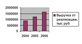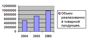 Объем реализованных товаров и услуг вырос на 4524138 тыс руб (86%) в 2006 г по сравнению с 2004 г, темп роста за анализируемый период составил 186%. (рисунок 2.1).
