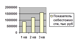 Рисунок 2.1 - Динамика показателя объема реализованной товарной продукции Показатель себестоимости (рисунок 2.2) за аналогичный период увеличился с 865615 тыс руб до 1586563 тыс руб. Это вязано с увеличением стоимости основных фондов (затраты на строительство дополнительных торговых площадей), изменением внутреннего курса доллара (каждый поставщик устанавливает свой курс валюты), а также с увеличением количества работников предприятия и затрат на сервис.