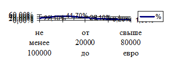 Рисунок 3.4 - Доля рынка, приходящаяся на различные автосалоны Конкуренция усиливается еще и за счет того, что возрастает спрос на новые автомобили. Причем, как показывают исследования, проводимые в автосалоне "Темп-Авто", большинство потребителей желают приобрести автомобили ценой до 20000 долларов США, что можно увидеть на рисунке 3.5