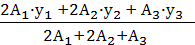 Рисунок 1 - Распределение центров тяжести Рассчитываем расстояние от центра тяжести блока до нижнего пояса блока по формуле (4): Ус = где: А - площадь сечений, см2 (рисунок 1); у - расстояние от центра тяжести детали до нижнего края плиты (рисунок 1) Ус = Ix = 2Ix1 +2 Ix2 + Ix3 ( 5) Ix1