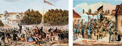 У Європі розгорнулися політичні й національно#визвольні рухи. Так, у грудні 1825 р. на Сенатській площі в Петербурзі, непо# далік від оспіваного О. Пушкіним «Олександрійського стовпа», відбу# лося повстання прогресивно налаш# тованої частини російських дворян проти тиранії, за конституційний державний устрій (рос. декабрь