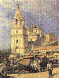 В. Маковський. Базар у Москві. 1884 р. кої епохи, від другої чверті ХІХ ст. починає втрачати свою провідну роль у системі мистецтв. З одного боку, архітектура Єв# ропи в ХІХ ст. відчутно змінилася. Так, у більшості міст вулиці стали значно ширшими й прямішими, подібними до сучасних. До того ж зникли традиційні фортечні мури, адже за тогочасного роз# витку артилерії вони становили інтерес швидше не для військови# ків, а для шанувальників старовини, подібно до того, як нині при# ваблює туристів грізна військова споруда — Велика Китайська стіна. Відтоді в містах стали переважати ка# м’яні, а не дерев’яні будівлі. У цьому ви можете переконатися самі: біль# шість пам’яток архітектури, що нині охороняються державою, спорудже# ні саме в ХІХ ст. З іншого боку, роль і значення ар# хітектури в художньому втіленні «ду# ху доби» порівняно з попередніми епо# хами зменшується. Щоправда, зодчі ХІХ ст., прагнучи опанувати естетичні можливості нових будівельних мате# ріалів і будівельної техніки, іноді до# бивалися помітних результатів. Так, тоді в Парижі постала вежа інженера А. Г. Ейфеля , зібрана з металевих