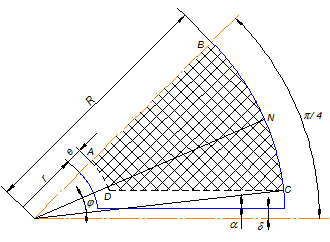 Рис. 8. Сектор щелевого заряда Полная начальная площадь горения заряда