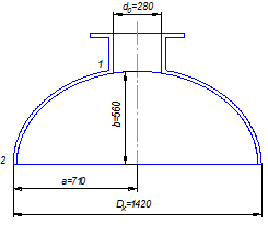 Для сопловой крышки принимаем тот же материал, что и для обечайки. Принимаем Расчет переднего днища Исходные данные: Внутренний диаметр камеры Диаметр заряда Материал днища 28ХСНМВФА (СП-28); Предел прочности Диаметр отверстия под фланец Порядок расчета: Толщина днища