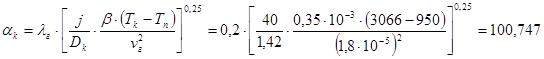 Расчет теплового потока в стенку камеры сгорания и сопловой крышки Коэффициент конвективной теплопередачи