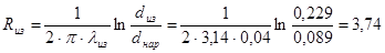 Тепловое сопротивление грунта. h/dэ.внеш =2,2/1,01=2,18 > 2, тогда