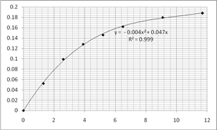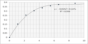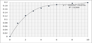 4.6Значение константы скорости, рассчитанное по опытам №№ 1-3Обобщая данные пунктов 1.2.-1.5. можем записать итоговое значение константы скорости, рассчитанное по первым трем опытам: k = 0,04564 ± 0,00222 5. Расчет констант скорости по остальным опытам5.1 Определение коэффициентов полинома для опытов №№ 4-9