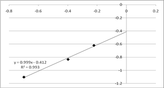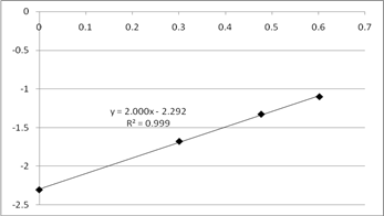 По данным таблицы 6 строим график зависимости логарифма начальных скоростей реакции от начальных концентраций А1 для опытов0,6,1,7, который представлен на рисунке 4.