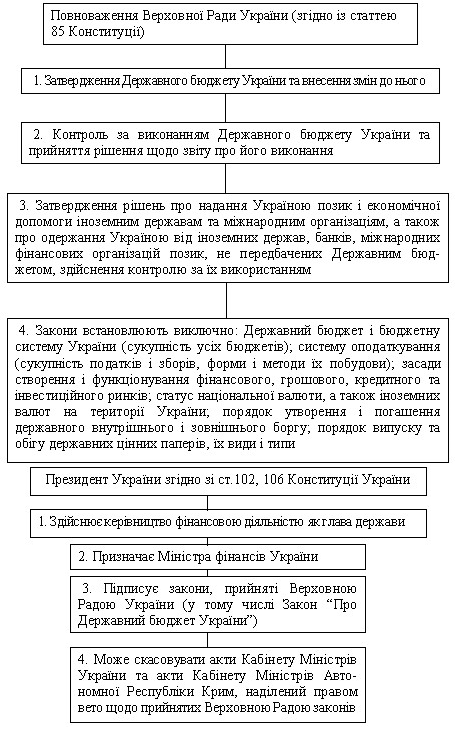 1. Користуючись Конституцією України, визначте права органів державної влади у галузі фінансової діяльності.