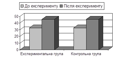 Порівняння показників фізкультурно-валеологічних знань до початку і після закінчення експерименту в обох групах (табл. 4.1) виявило, що в результаті цілеспрямованої дії рівень середніх величин у експериментальній групі достовірно збільшився.