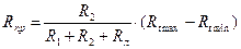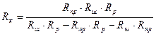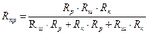 Из уравнения (З) следует, что разность сопротивлений термометра, соответствующих верхнему и нижнему пределам шкалы, равная пределам измерения прибора, пропорциональна величине приведенного сопротивления реохорда. Следовательно, изменение пределов измерения прибора может быть осуществлено изменением величины приведенного сопротивления реохорда Rnp , состоящего из трех параллельно включенных сопротивлений RP , Rш , RK и определяемого по уравнению: