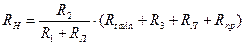 В автоматических электронных равновесных постах сопротивления реохорда и его шунта - величины постоянные и равные RP = 258 Ом, а Rш =137 Ом. Поэтому подгонка сопротивления Rnp до требуемого значения, определяемого уравнением (3), осуществляется изменением величины сопротивления RK , которую можно найти из уравнения (4) Из уравнения (1) определяем величину сопротивления RH , предназначенного для подгонки нижнего предела измерения прибора: