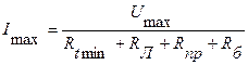 R1 = R2 = 200 Ом, R3 = 4,4 Ом, Rл = 2,5 Ом Максимальная величина тока, протекающая через термометр сопротивления определяется по уравнению: где Umax максимальное напряжение на зажимах питания измерительной схемы моста. 6,3B = Umax Максимально допустимая величина тока, исключающая самонагрев термометра равна 7-8 мА. При прочих равных условиях величина Imax зависит от величины R6, определяемой по уравнению: