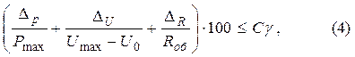 где Δu – предел допускаемой абсолютной погрешности образцового прибора, контролирующего выходной сигнал при верхнем предельном значении выходного сигнала поверяемого преобразователя, в тех же единицах, что и Umax ; Umax и Uo – соответственно верхнее и нижнее предельное значение выходного сигнала, определяемые по формулам: